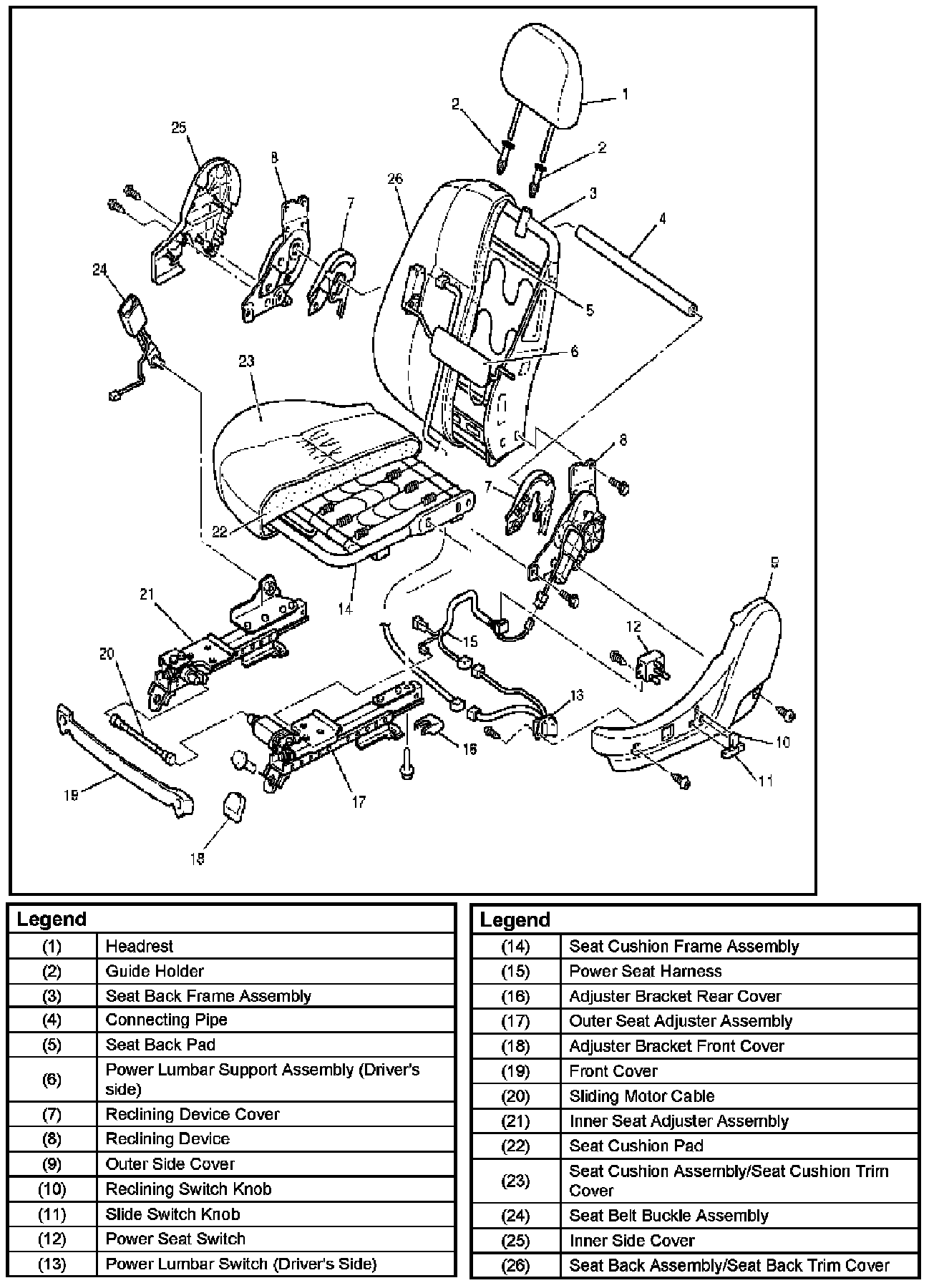 Power Seat AssemblyPower Seat Assembly And Associated Parts: