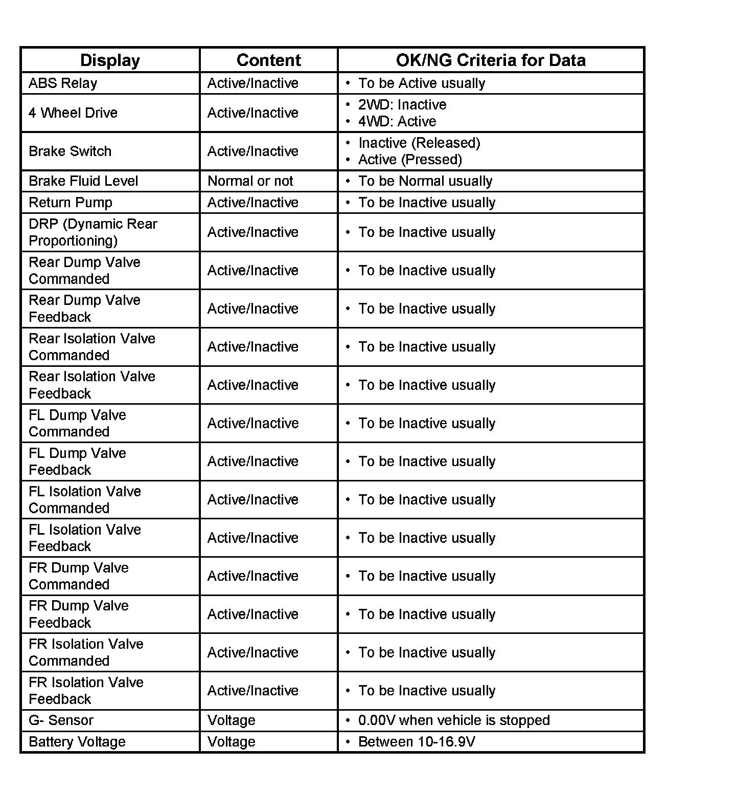 Tech 2 Data List