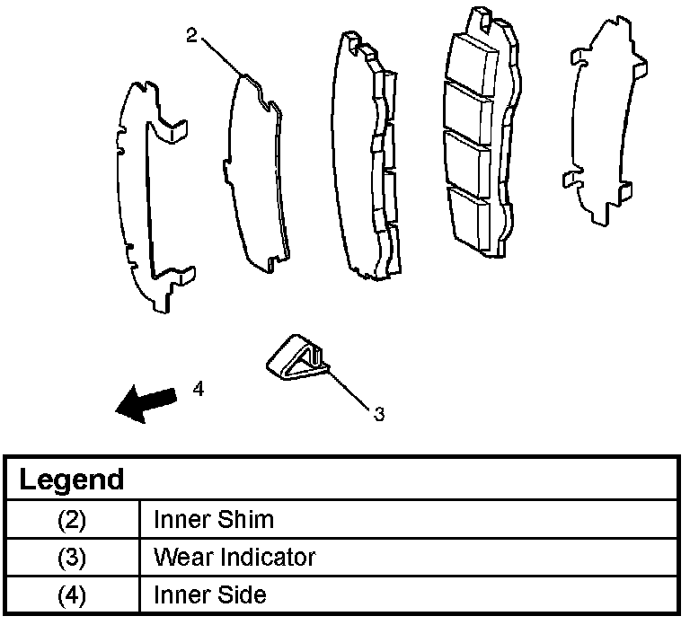 Note: If a squealing noise occurs from the front brake while driving, check the pad wear indicator plate. If the indicator plate contacts the rotor, the disc pad assembly should be replaced.