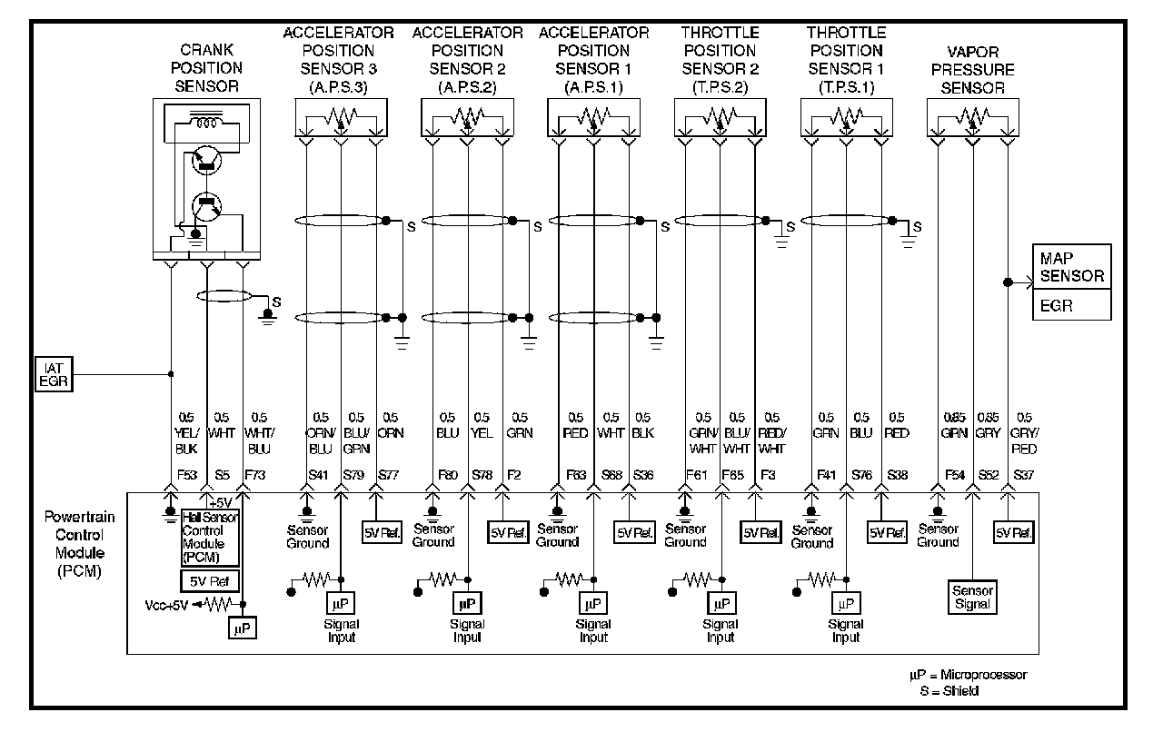 - The acceleration position (AP1) sensor circuit provides a voltage signal relative to acceleration pedal angle.