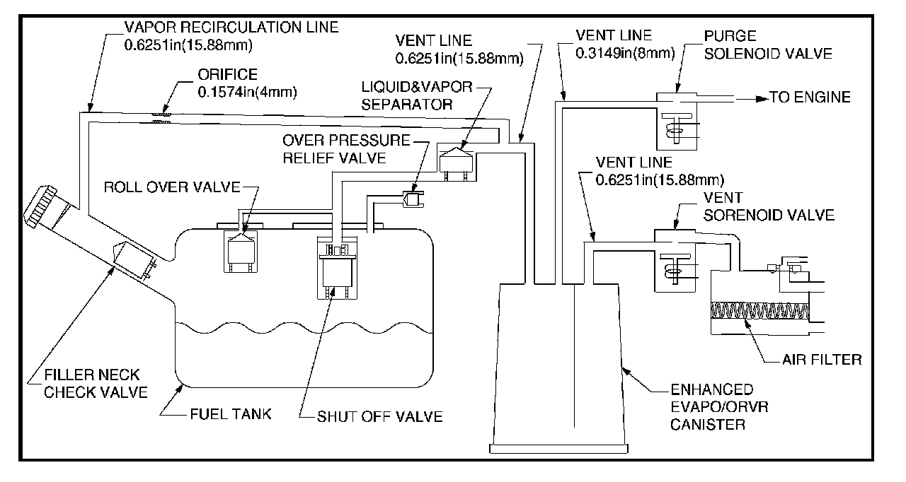 The in-tank fuel pump is an electric pump within an integral reservoir. The in-tank fuel pump supplies fuel through an in-line fuel filter to the fuel rail assembly. The fuel pump is designed to provide fuel at a pressure above the pressure needed by the fuel injectors. A fuel pressure regulator, attached to the fuel rail, keeps the fuel available to the fuel injectors at a regulated pressure. Unused fuel is returned to the fuel tank by a separate fuel return line.