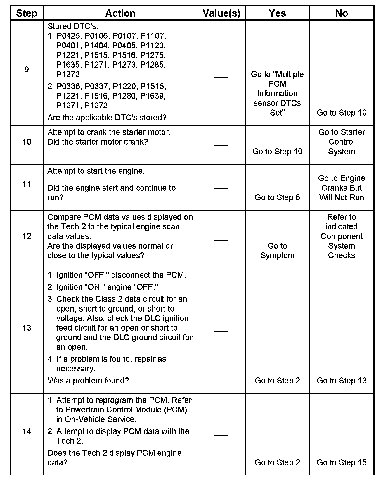 14. A Tech 2 parameter which is not within the typical range may help to isolate the area which is causing the problem.