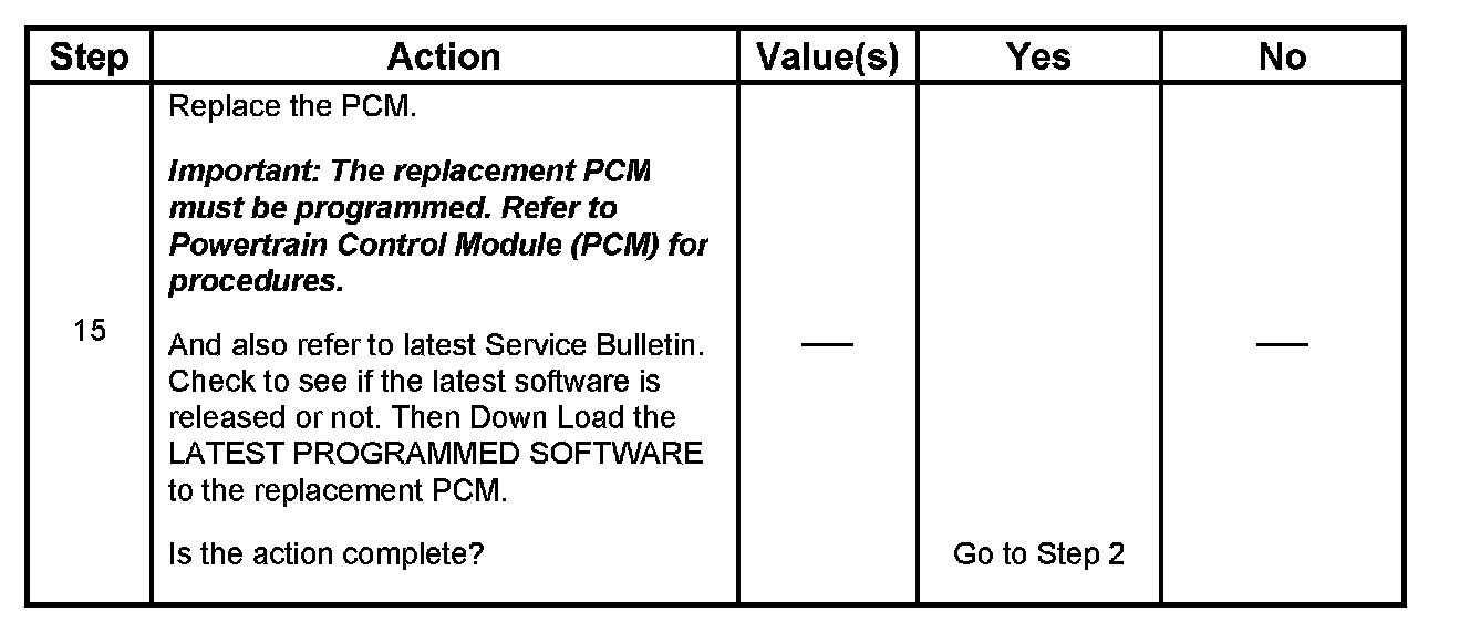 15. This vehicle is equipped with a PCM which utilizes an electrically erasable programmable read only memory (EEPROM). When the PCM is replaced, the new PCM must be programmed. Refer to PCM Replacement and Programming Procedures in Powertrain Control Module (PCM) and Sensors of this section.