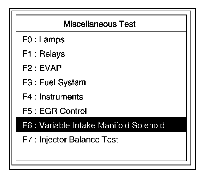 4. Select F6: Variable Intake Manifold Solenoid Test.