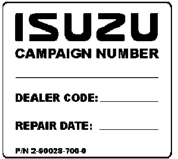 Affix the campaign label P/N 2-90028-700-0 adjacent to the manufacturer's identification label located inside the driver's door. Using a ballpoint pen, fill in the label with campaign number 05V-466, Isuzu dealer code and repair date.