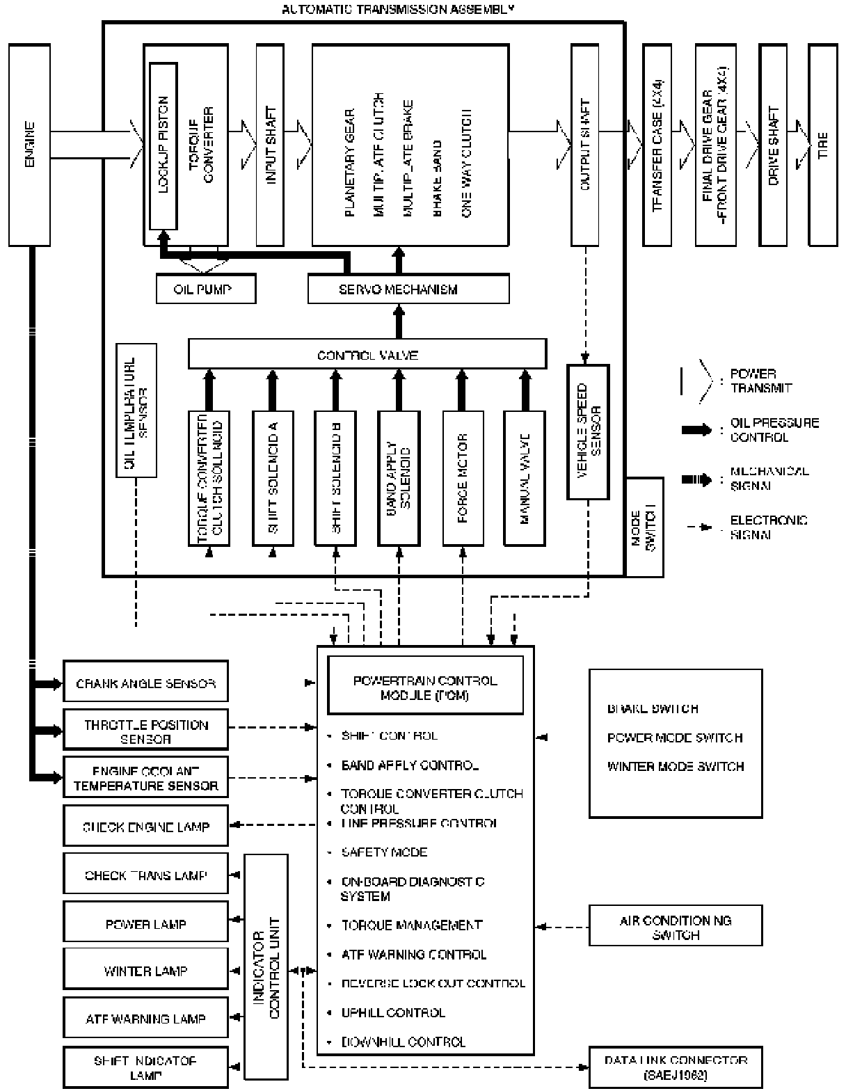 Also, the built-in fail-safe function ("backup mode") assures driving performance even if the vehicle speed sensor, throttle signal or any solenoid fails.