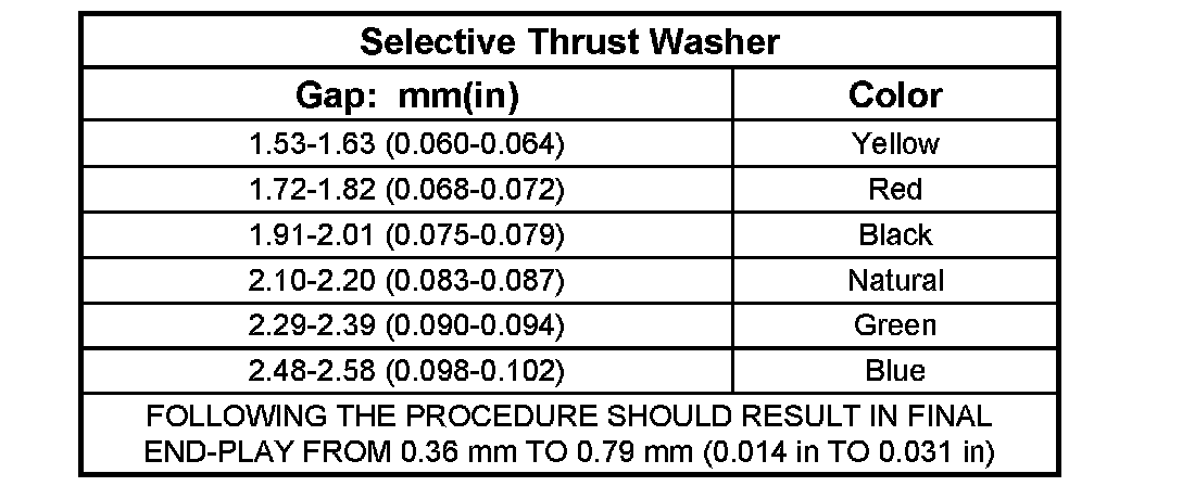 5. Measure the gap and select appropriate washer as shown in the chart.