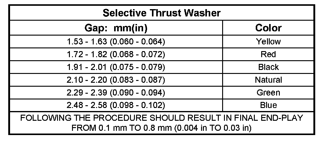6. Measure the gap and select appropriate washer as shown in the chart.
