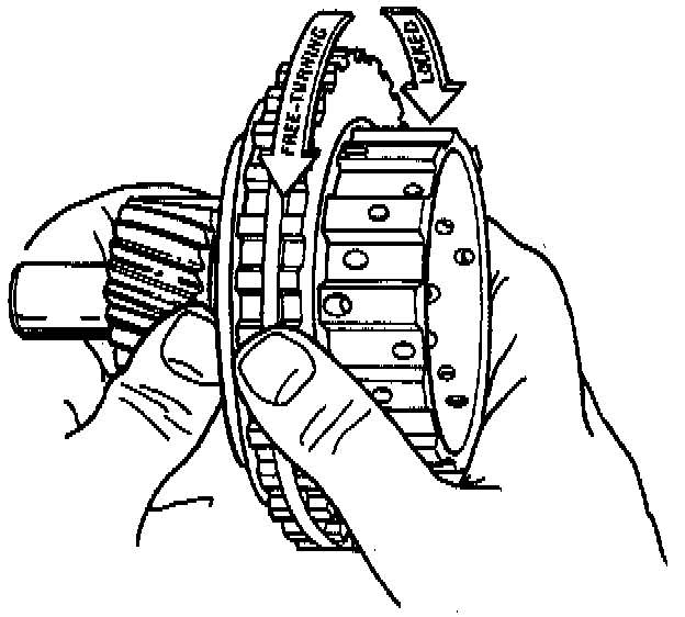 Note: Check correct rotation by holding the sun gear in your left hand and turning the outer race. The outer sprag race should turn freely towards you and should lock turning away from you.