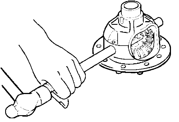 2. Remove the differential shaft by using a soft metal rod and a hammer.