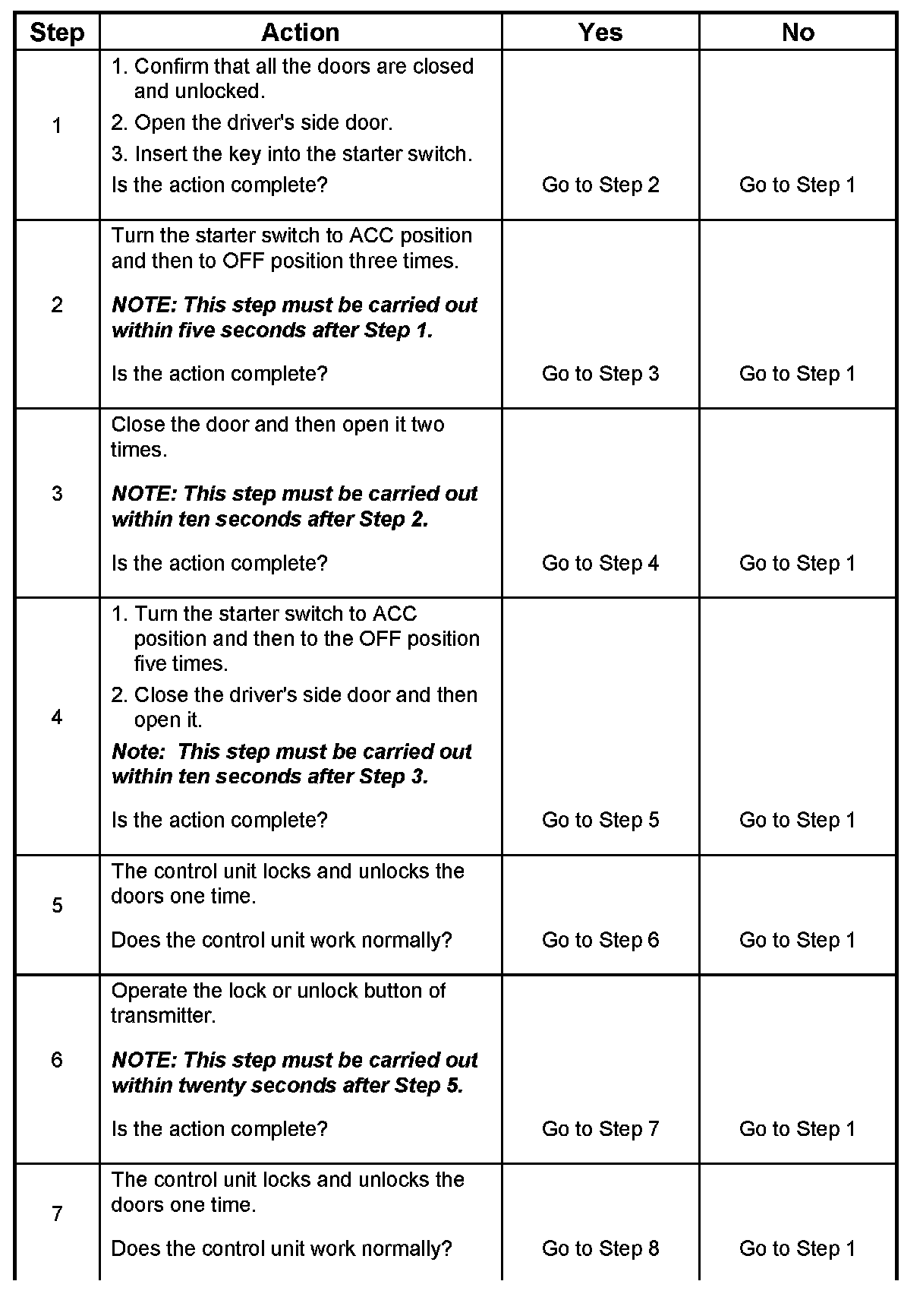 This procedure erases all registered ID codes and registers a new received ID code instead.