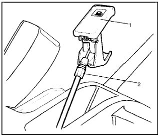 - Remove the fuel filter lid opener(1) and disconnect the cable(2).