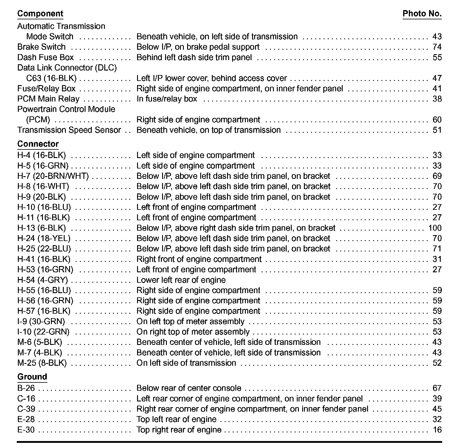 Component location Index photographs can be found at Diagnosis and Repair/Locations/Components.