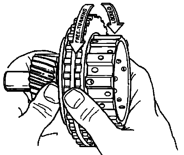 Note: Check correct rotation by holding the sun gear in your left hand and turning the outer race. The outer sprag race should turn freely towards you and should lock turning away from you.