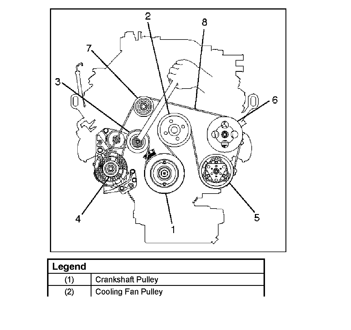 Note: For correct belt installation, the letter on the belt must be able to be read as viewed from the front of the vehicle.
