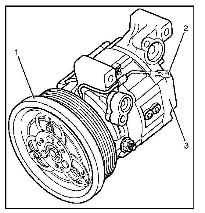 The compressor is driven by the drive belt from the crank pulley of the engine. If the compressor is activated each time the engine is started, this causes too much load to the engine. The magnetic clutch (1) transmits the power from the engine to the compressor and activates it when the air conditioning is ON. Also, it cuts off the power from the engine to the compressor when the air conditioning is OFF. Refer to Compressor for magnetic clutch repair procedure.