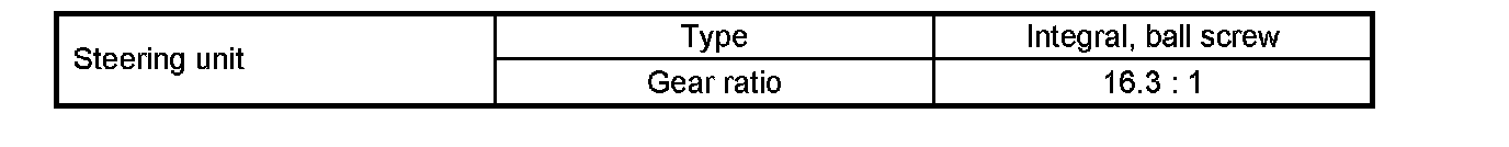 Power Steering GearGeneral Specifications