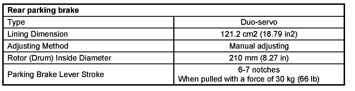 Parking Brake System: Specifications