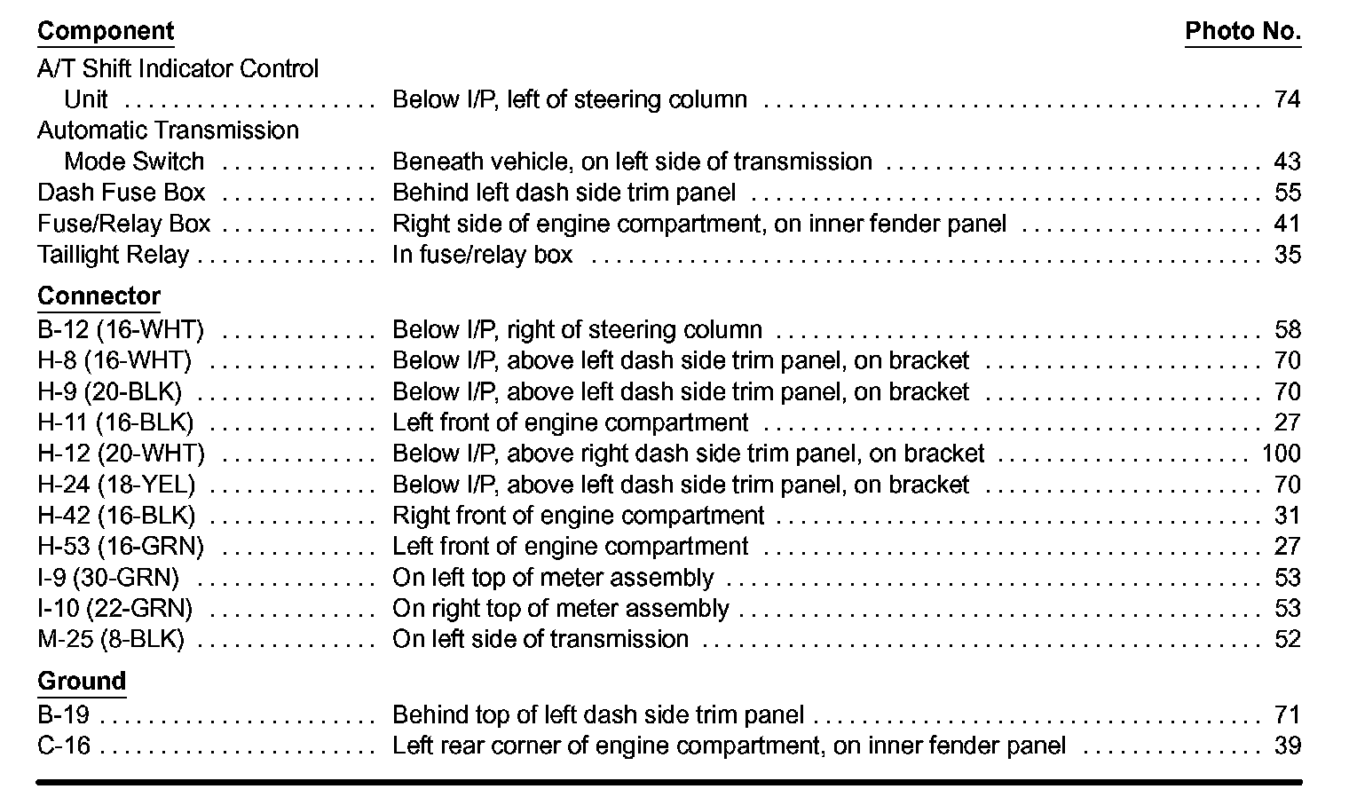 A/T Shift Indicator Index: