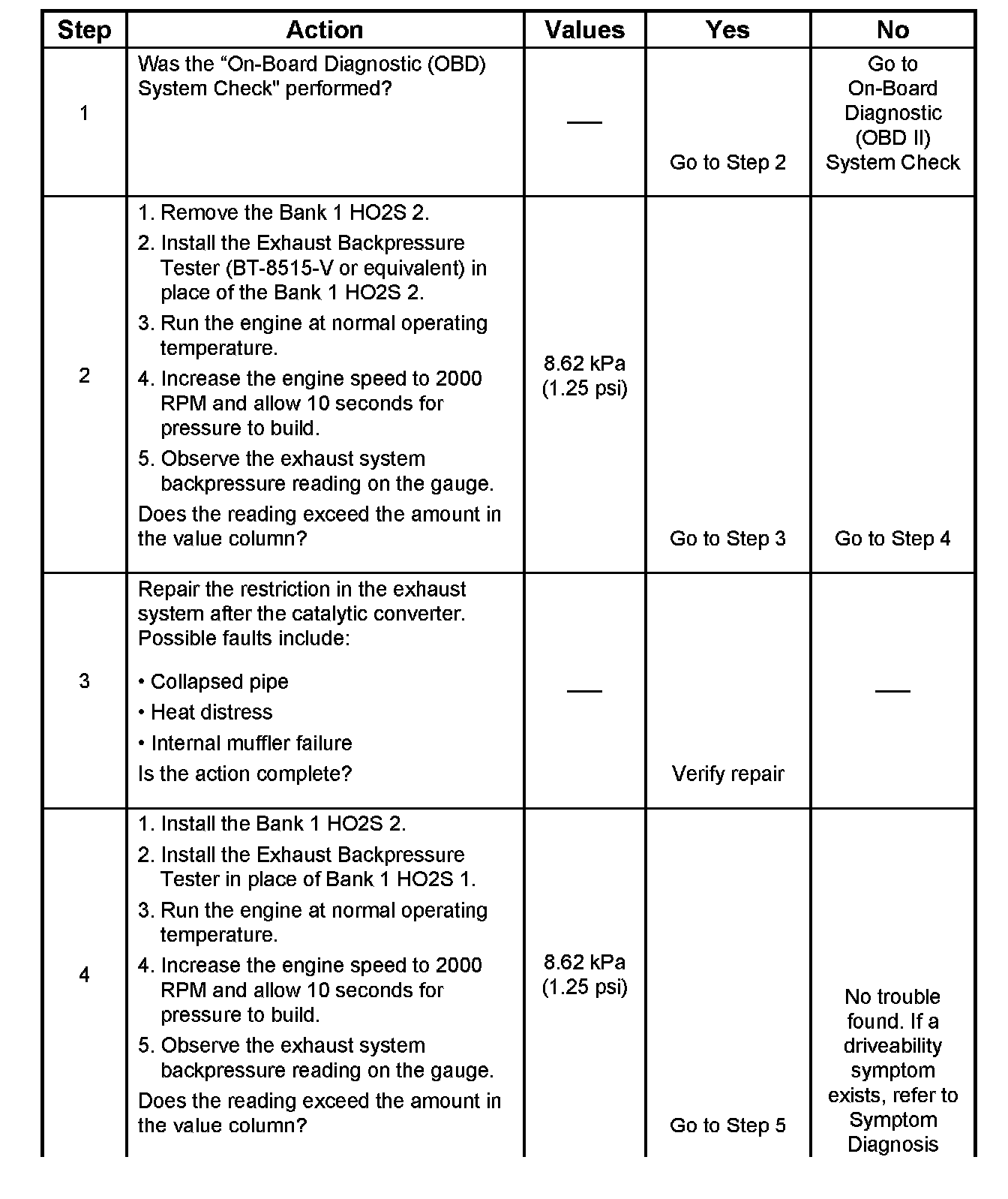 Bank 1 Restricted Exhaust System Check