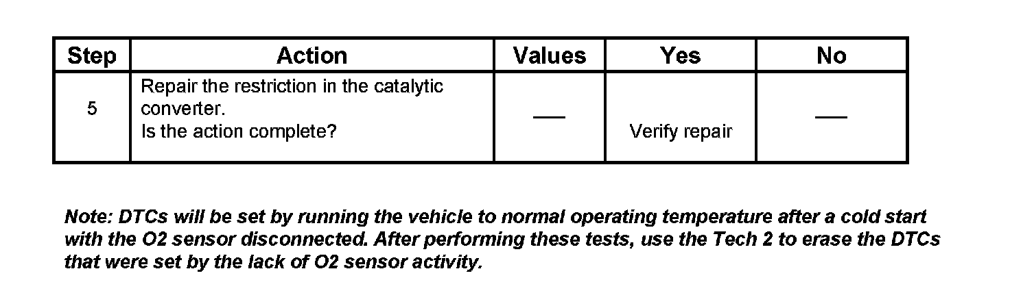 NOTE: DTCs will be set by running the vehicle to normal operating temperature after a cold start with the O2 sensor disconnected. After performing these tests, use the Tech 2 to erase the DTCs that were set by the lack of O2 sensor activity.