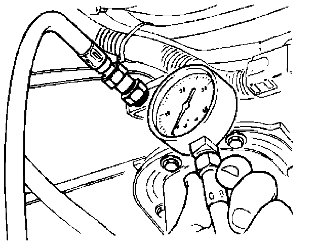 7. Note the pressure gauge reading with the engine idling.