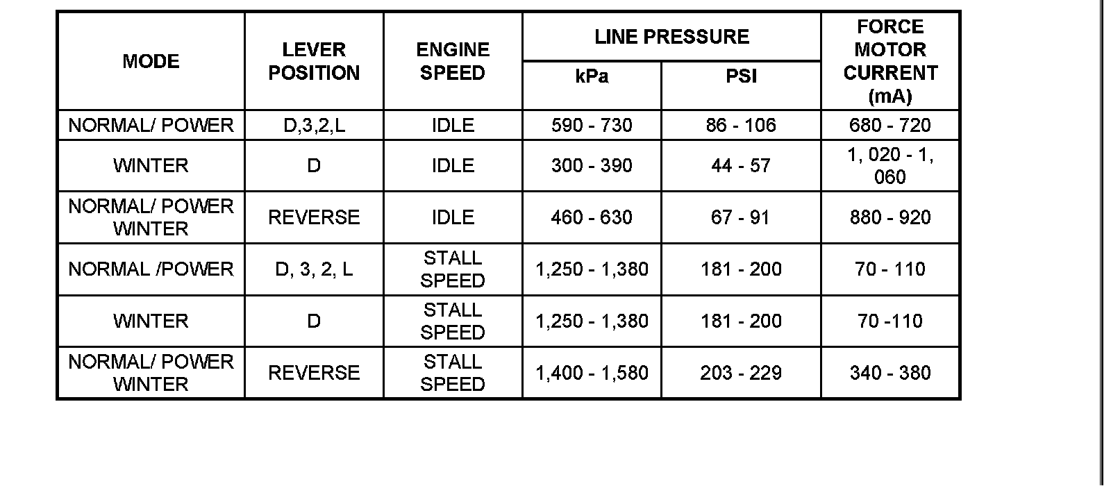 Line Pressure TestThe line pressure test checks oil pump and control valve pressure regulator valve function. It will also detect oil leakage.