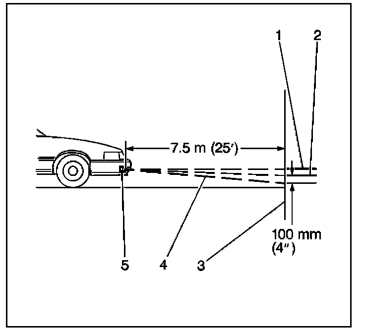 - Using this measurement, mark the horizontal centerline of the fog lamp (1) on the target screen directly in front of the vehicle.