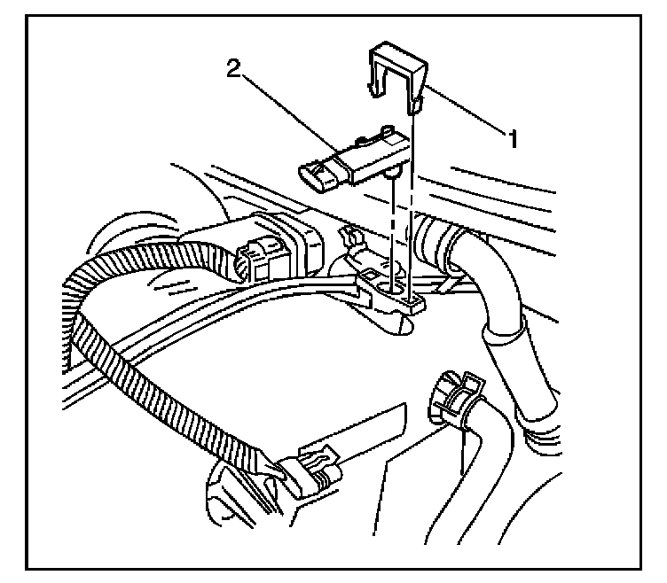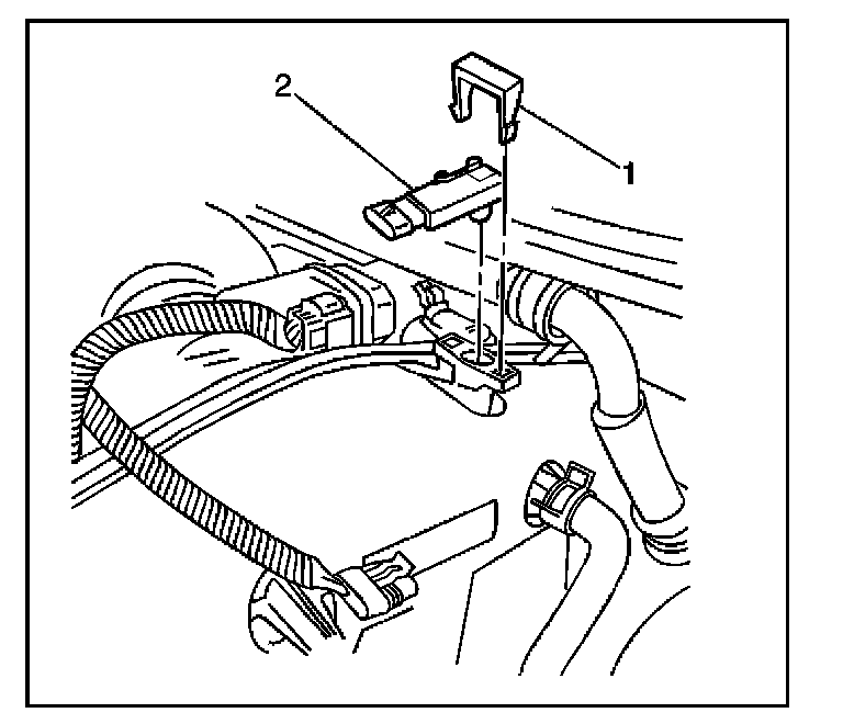 3. Press the retainer locking tabs inward, then pull the retainer (1) up to remove it.