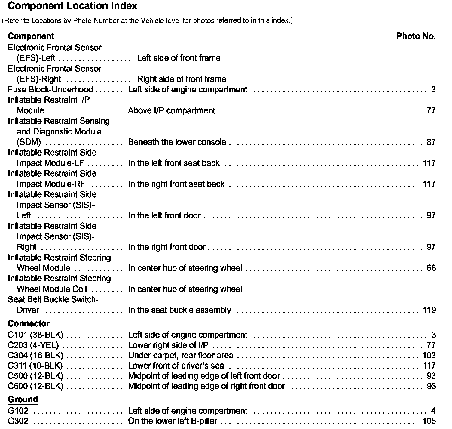 Air Bag Systems: Locations