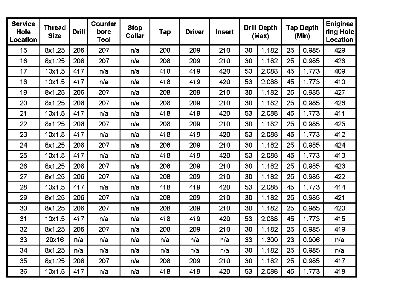 Thread Repair Specifications