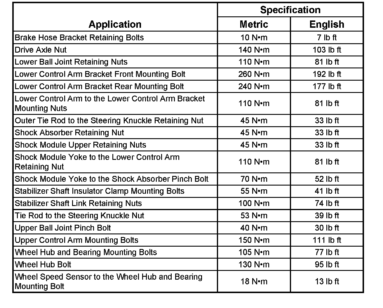 Fastener Tightening Specifications