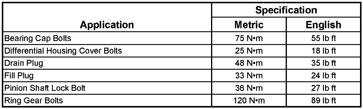 Differential Adjustment Shim Specifications:
