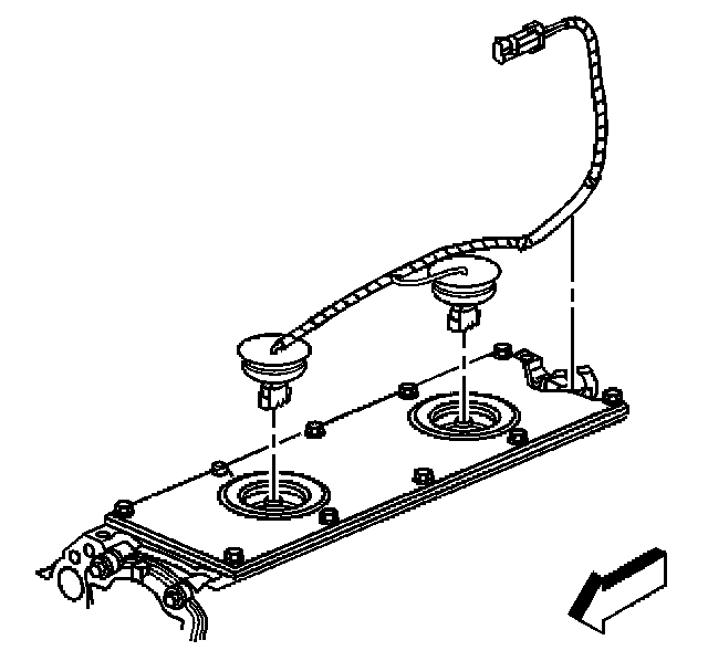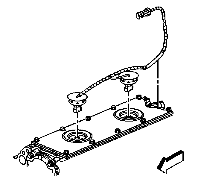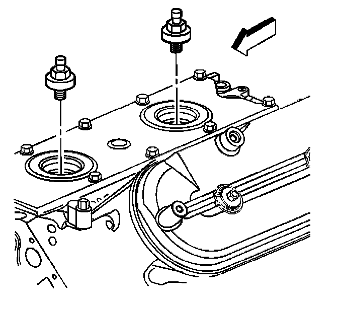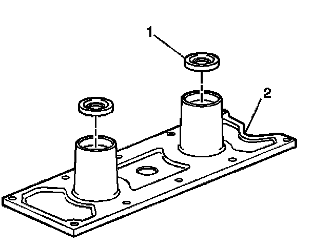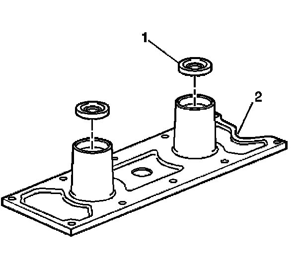 2. Install the knock sensor oil seals (1) into the engine valley cover (2).