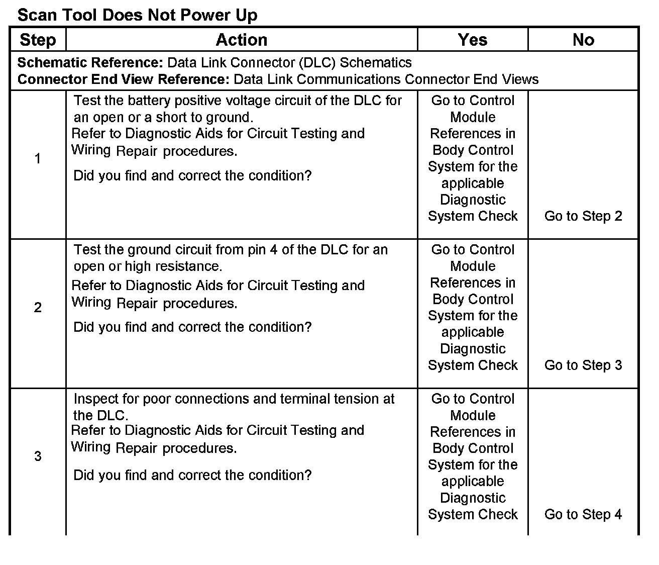 4. If the battery positive voltage and ground circuits of the DLC are functioning properly. The malfunction must be due to the scan tool.