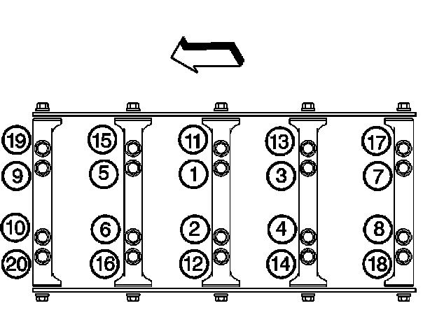 Crankshaft Bearing Cap Bolts - Outer Bolts - First Pass; 20 Nm (15 ft. lbs.)