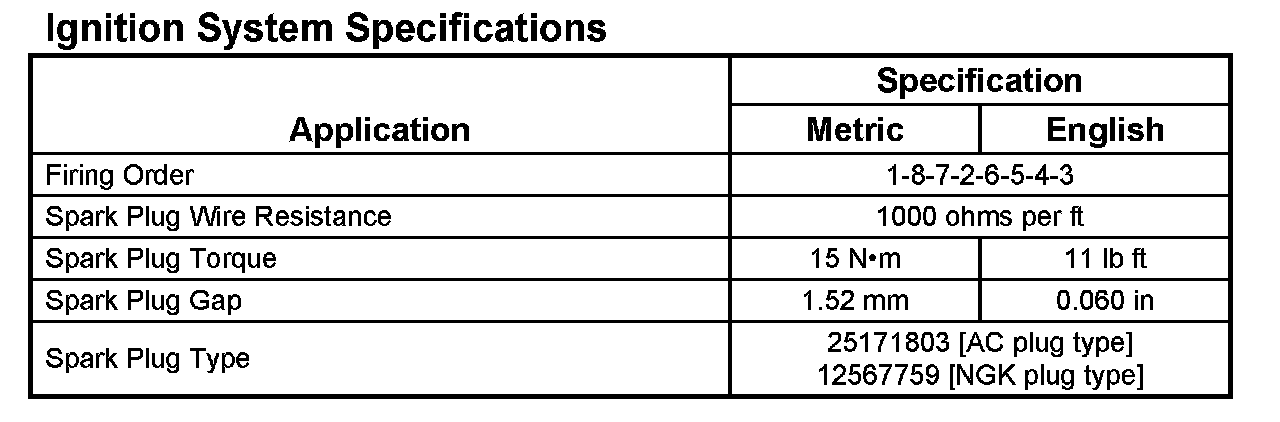 Ignition System Specifications 5.3L:
