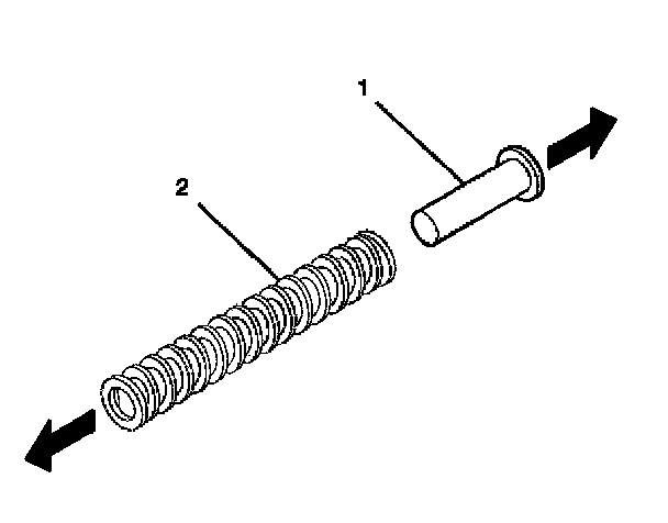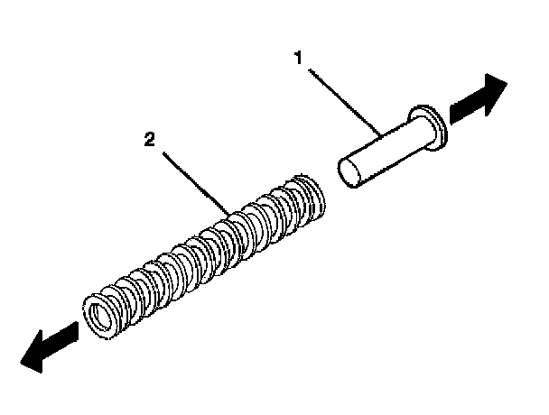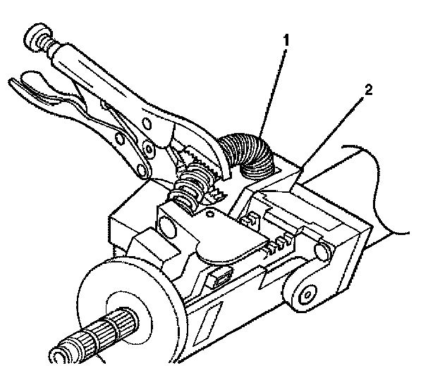 3. Install the tilt spring (1) onto the steering column support assembly (2) and onto the steering column tilt head assembly by using the following procedure:
