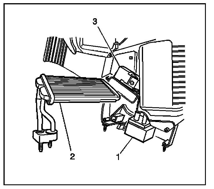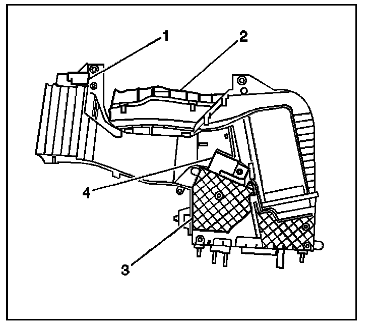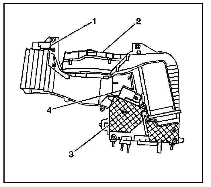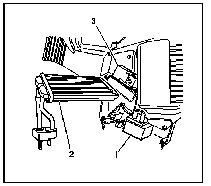 1. Install the heater core-auxiliary (2) to the HVAC module-auxiliary.