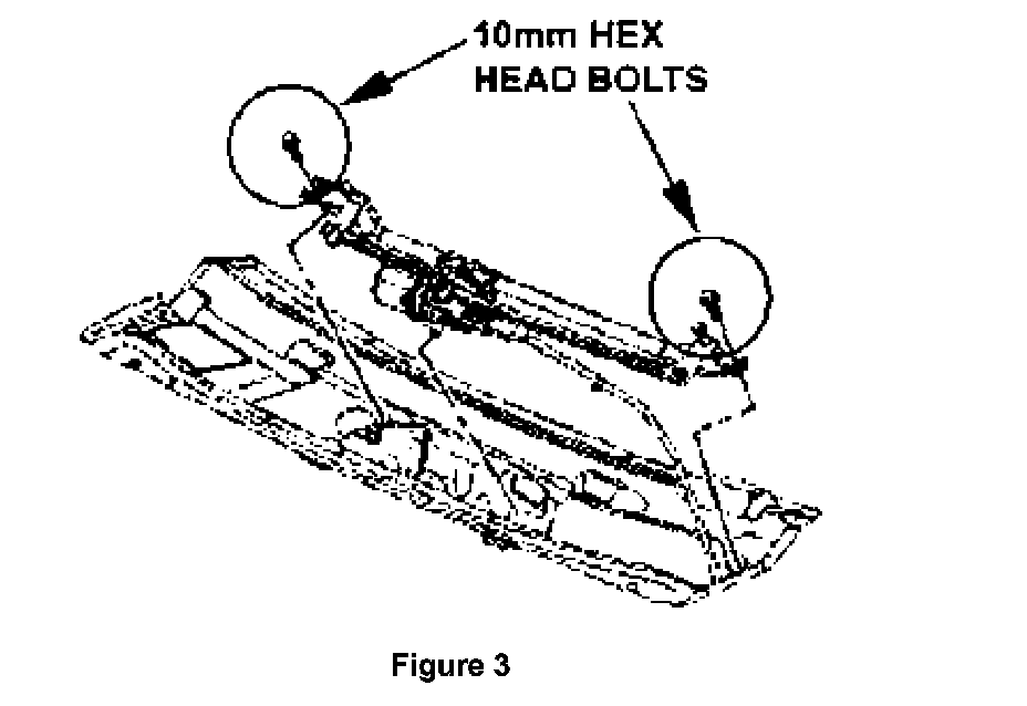 13. Remove the two 10 mm hex head bolts that attach the wiper module to the plenum sheet metal (see figure 3).
