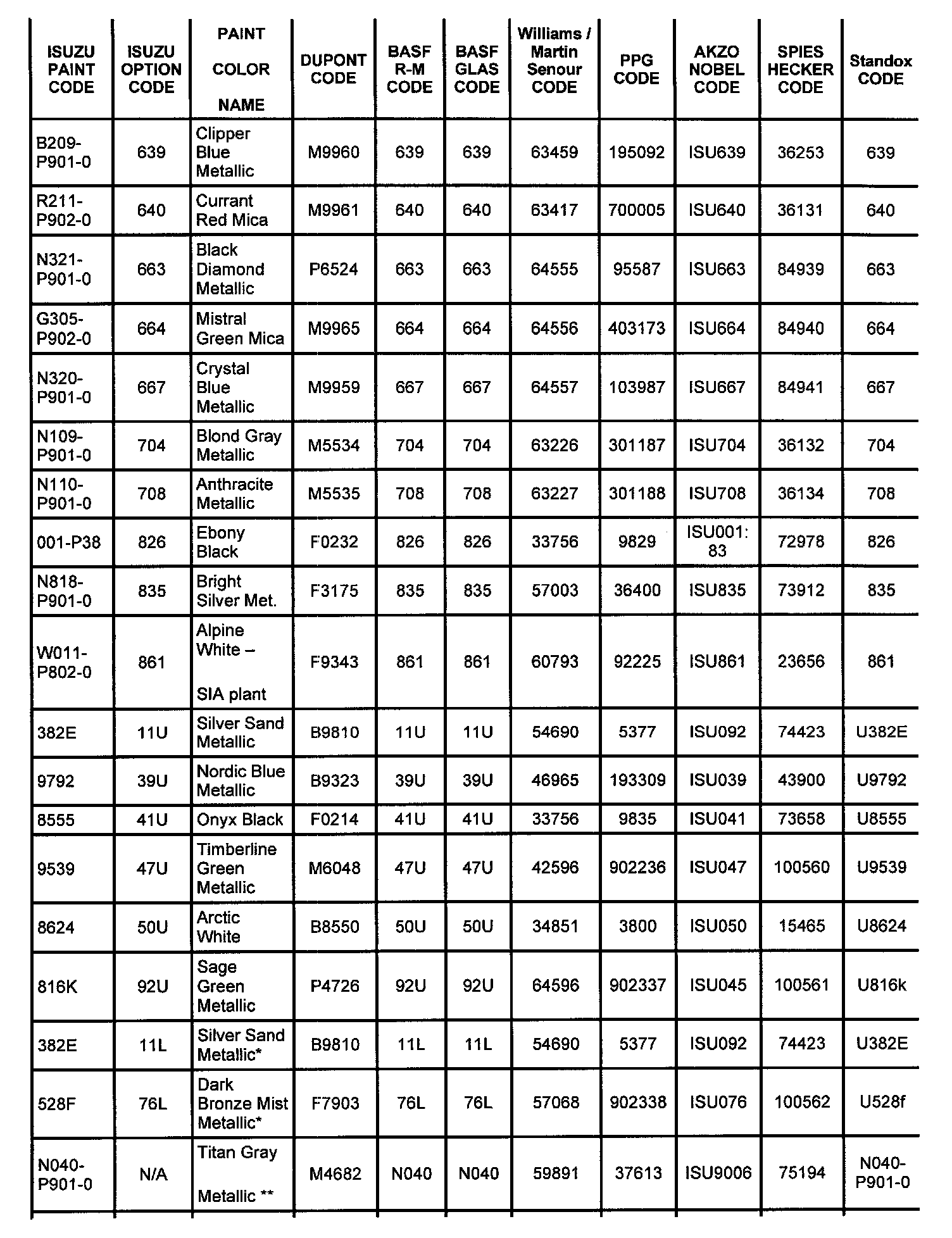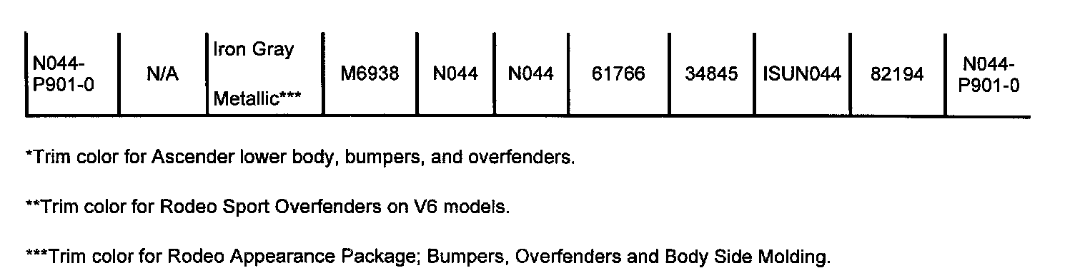 The 3-digit Isuzu option code is printed on the Service ID Information Label on cowl under hood.