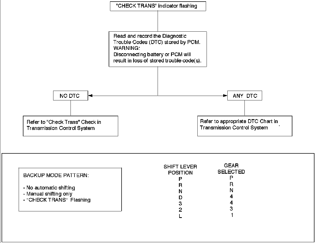 The system is now operating in a "BACKUP MODE" where the risk of further damaging the transmission has been reduced. The vehicle may be shifted manually.
