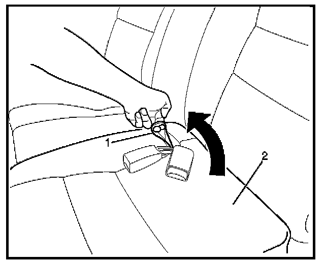 - Pull the strap (1) of the rear seat lock assembly to release the seat lock.