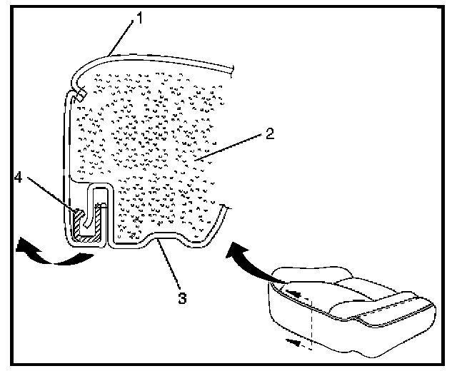- Remove cushion trim cover from the rear cushion frame (3) by prying on the plastic retainers (4).