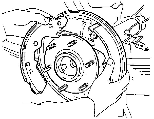 Replace the shoe assemblies, if lining thickness is less than 1.0 mm (0.039 inch).