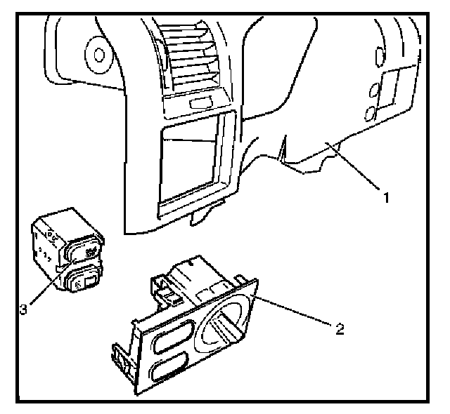 - To remove the cruise main switch, illumination controller and transfer switch assembly (2), push the lock from the back side of the meter cluster assembly.