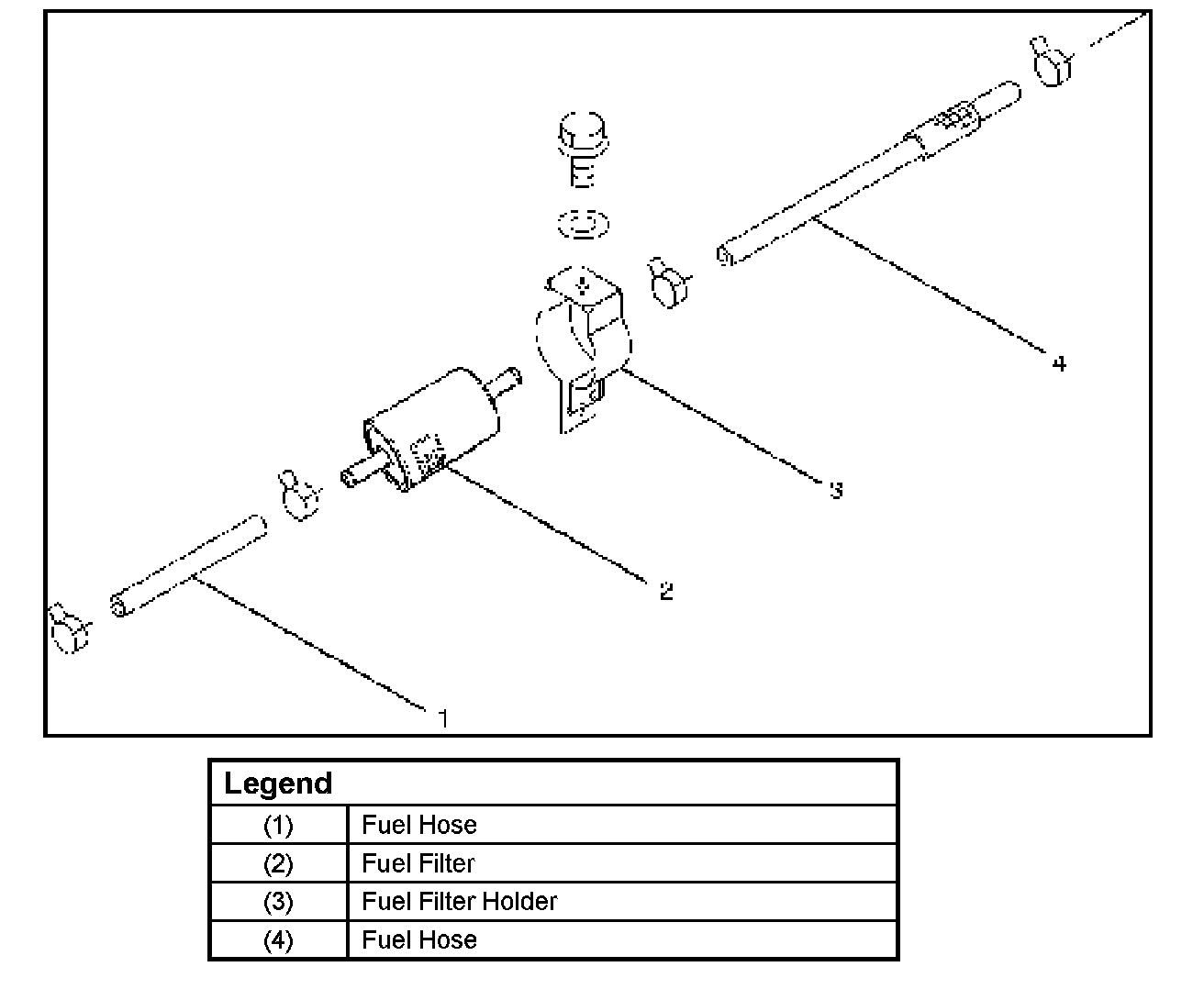 3. Disconnect fuel hoses (1), (4) from fuel filter on both engine side and fuel tank side.