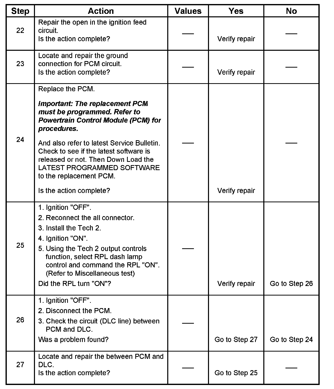 24. This vehicle is equipped with a PCM which utilizes an electrically erasable programmable read only memory (EEPROM). When the PCM is replaced, the new PCM must be programmed. Refer to PCM Replacement and Programming Procedures in Powertrain Control Module (PCM) and Sensors.