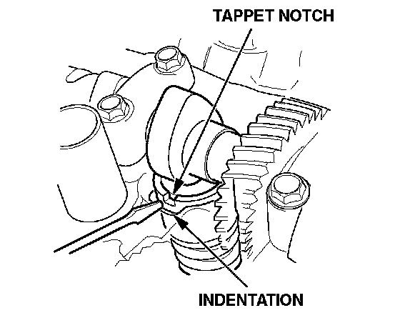 7. Turn the valve tappet with a pick or a small screwdriver until the tappet notch is within the indentation in the head.