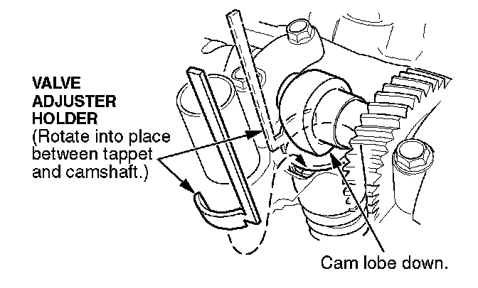 6. If you need to replace a valve shim, turn the crankshaft (or camshaft) until the cam lobe for the valve points away from the valve.